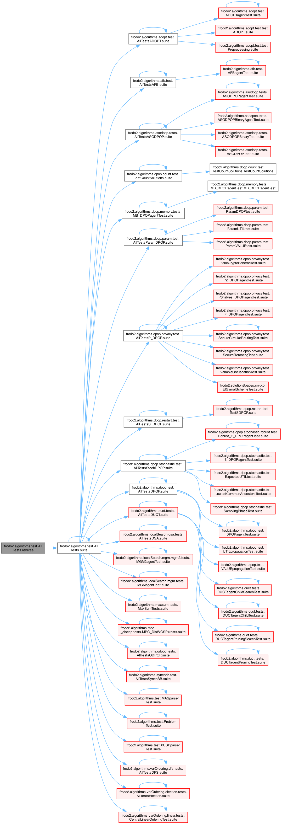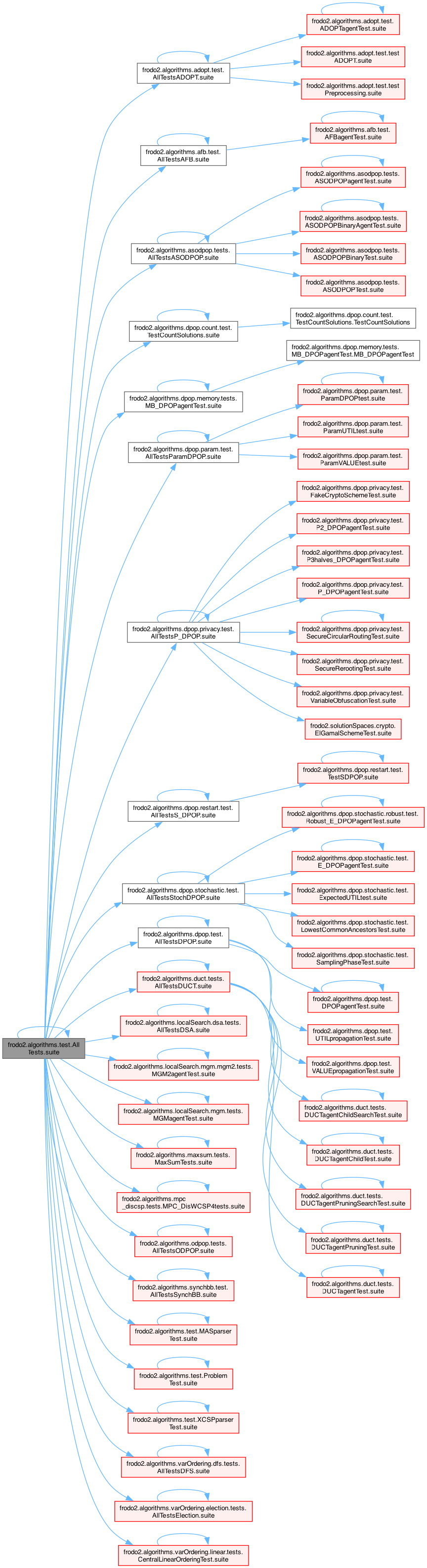 References frodo2.algorithms.adopt.test.AllTestsADOPT.suite(), frodo2.algorithms.afb.test.AllTestsAFB.suite(), frodo2.algorithms.asodpop.tests.AllTestsASODPOP.suite(), frodo2.algorithms.dpop.count.test.TestCountSolutions.suite(), frodo2.algorithms.dpop.memory.tests.MB_DPOPagentTest.suite(), frodo2.algorithms.dpop.param.test.AllTestsParamDPOP.suite(), frodo2.algorithms.dpop.privacy.test.AllTestsP_DPOP.suite(), frodo2.algorithms.dpop.restart.test.AllTestsS_DPOP.suite(), frodo2.algorithms.dpop.stochastic.test.AllTestsStochDPOP.suite(), frodo2.algorithms.dpop.test.AllTestsDPOP.suite(), frodo2.algorithms.duct.tests.AllTestsDUCT.suite(), frodo2.algorithms.localSearch.dsa.tests.AllTestsDSA.suite(), frodo2.algorithms.localSearch.mgm.mgm2.tests.MGM2agentTest< V extends Addable< V >, U extends Addable< U > >.suite(), frodo2.algorithms.localSearch.mgm.tests.MGMagentTest< V extends Addable< V >, U extends Addable< U > >.suite(), frodo2.algorithms.maxsum.tests.MaxSumTests< V extends Addable< V >, U extends Addable< U > >.suite(), frodo2.algorithms.mpc_discsp.tests.MPC_DisWCSP4tests.suite(), frodo2.algorithms.odpop.tests.AllTestsODPOP.suite(), frodo2.algorithms.synchbb.test.AllTestsSynchBB.suite(), suite(), frodo2.algorithms.test.MASparserTest.suite(), frodo2.algorithms.test.ProblemTest.suite(), frodo2.algorithms.test.XCSPparserTest.suite(), frodo2.algorithms.varOrdering.dfs.tests.AllTestsDFS.suite(), frodo2.algorithms.varOrdering.election.tests.AllTestsElection.suite(), and frodo2.algorithms.varOrdering.linear.tests.CentralLinearOrderingTest.suite().