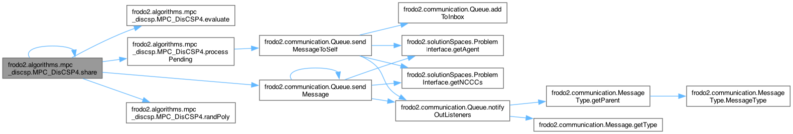 References evaluate(), nbrAgents, processPending(), frodo2.communication.Queue.sendMessage(), and share().