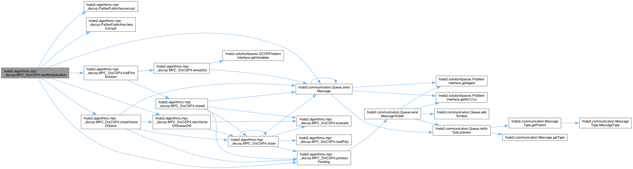 References frodo2.algorithms.AgentInterface< V extends Addable< V > >.AGENT_FINISHED, frodo2.algorithms.mpc_discsp.PaillierCryptoScheme.decrypt(), frodo2.algorithms.mpc_discsp.EncrSharesMsg.ENCR_SHARES_MSG_TYPE, frodo2.algorithms.mpc_discsp.PaillierPublicKey.encrypt(), frodo2.communication.MessageType.equals(), frodo2.algorithms.mpc_discsp.PaillierPublicKey.fakeEncrypt(), findFirstSolution(), frodo2.algorithms.mpc_discsp.OneShareMsg.getAgent(), frodo2.algorithms.mpc_discsp.SharesMsg.getAgent(), frodo2.algorithms.mpc_discsp.EncrSharesMsg.getAgentID(), frodo2.algorithms.mpc_discsp.Matrix.getArray(), frodo2.solutionSpaces.DCOPProblemInterface< V extends Addable< V >, U extends Addable< U > >.getDomain(), frodo2.algorithms.mpc_discsp.EncrSharesMsg.getPublicKey(), frodo2.algorithms.mpc_discsp.SolShareMsg.getSender(), frodo2.algorithms.mpc_discsp.OneShareMsg.getShare(), frodo2.algorithms.mpc_discsp.EncrSharesMsg.getShares(), frodo2.algorithms.mpc_discsp.SharesMsg.getShares(), frodo2.algorithms.mpc_discsp.SolShareMsg.getShares(), frodo2.communication.Message.getType(), frodo2.solutionSpaces.DCOPProblemInterface< V extends Addable< V >, U extends Addable< U > >.getVariables(), frodo2.algorithms.mpc_discsp.MPC_DisCSP4< V extends Addable< V > >.Phase.h, init(), newVectorOfSharesOf0(), nextMultiplication(), frodo2.algorithms.mpc_discsp.OneShareMsg.ONE_SHARE_MSG, processPending(), frodo2.algorithms.mpc_discsp.PaillierCryptoScheme.publicKey, frodo2.algorithms.mpc_discsp.MPC_DisCSP4< V extends Addable< V > >.MultiPhase.randomize, frodo2.algorithms.mpc_discsp.MPC_DisCSP4< V extends Addable< V > >.MultiPhase.reveal, revealSol(), frodo2.algorithms.mpc_discsp.MPC_DisCSP4< V extends Addable< V > >.Phase.S, frodo2.communication.Queue.sendMessage(), frodo2.communication.Queue.sendMessageToSelf(), frodo2.algorithms.mpc_discsp.MPC_DisCSP4< V extends Addable< V > >.MultiPhase.share, share(), share0(), shares, frodo2.algorithms.mpc_discsp.SharesMsg.SHARES_MSG_TYPE, shareVector(), shareVectorOfZeros(), frodo2.algorithms.mpc_discsp.MPC_DisCSP4< V extends Addable< V > >.Phase.shuffling, frodo2.algorithms.mpc_discsp.MPC_DisCSP4< V extends Addable< V > >.Phase.sol, frodo2.algorithms.mpc_discsp.SolShareMsg.SOL_SHARE_MSG_TYPE, frodo2.algorithms.mpc_discsp.MPC_DisCSP4< V extends Addable< V > >.Phase.SprimePrime, frodo2.algorithms.AgentInterface< V extends Addable< V > >.STATS_MONITOR, frodo2.algorithms.mpc_discsp.EncrSharesMsg.step, frodo2.algorithms.mpc_discsp.OneShareMsg.step, frodo2.algorithms.mpc_discsp.SharesMsg.step, frodo2.algorithms.mpc_discsp.SolShareMsg.step, terminate(), frodo2.algorithms.mpc_discsp.Matrix.times(), and frodo2.algorithms.mpc_discsp.MPC_DisCSP4< V extends Addable< V > >.Phase.vectorMultiplication.