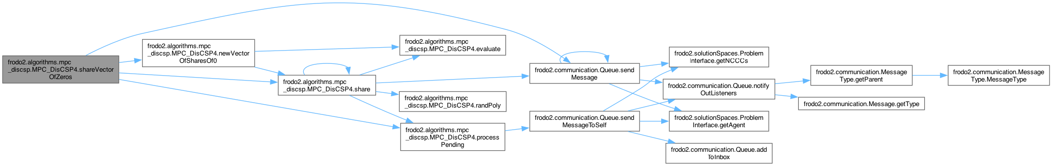 References nbrAgents, newVectorOfSharesOf0(), processPending(), frodo2.communication.Queue.sendMessage(), share(), and shares.