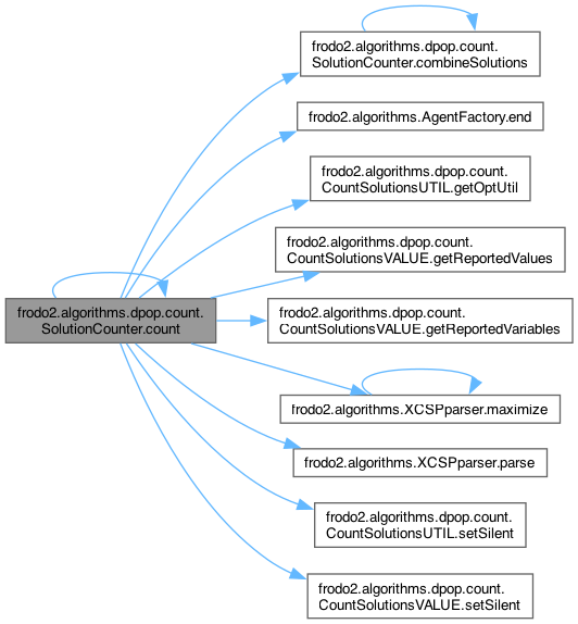 References agentDesc, combineSolutions(), count(), frodo2.algorithms.AgentFactory< V extends Addable< V >, U extends Addable< U > >.end(), frodo2.algorithms.dpop.count.CountSolutionsUTIL< Val extends Addable< Val >, U extends Addable< U > >.getOptUtil(), frodo2.algorithms.dpop.count.CountSolutionsVALUE< Val extends Addable< Val >, U extends Addable< U > >.getReportedValues(), frodo2.algorithms.dpop.count.CountSolutionsVALUE< Val extends Addable< Val >, U extends Addable< U > >.getReportedVariables(), frodo2.algorithms.XCSPparser< V extends Addable< V >, U extends Addable< U > >.maximize(), optimalUtil, frodo2.algorithms.XCSPparser< V extends Addable< V >, U extends Addable< U > >.parse(), frodo2.algorithms.dpop.count.CountSolutionsUTIL< Val extends Addable< Val >, U extends Addable< U > >.setSilent(), frodo2.algorithms.dpop.count.CountSolutionsVALUE< Val extends Addable< Val >, U extends Addable< U > >.setSilent(), valuesReported, and variablesReported.